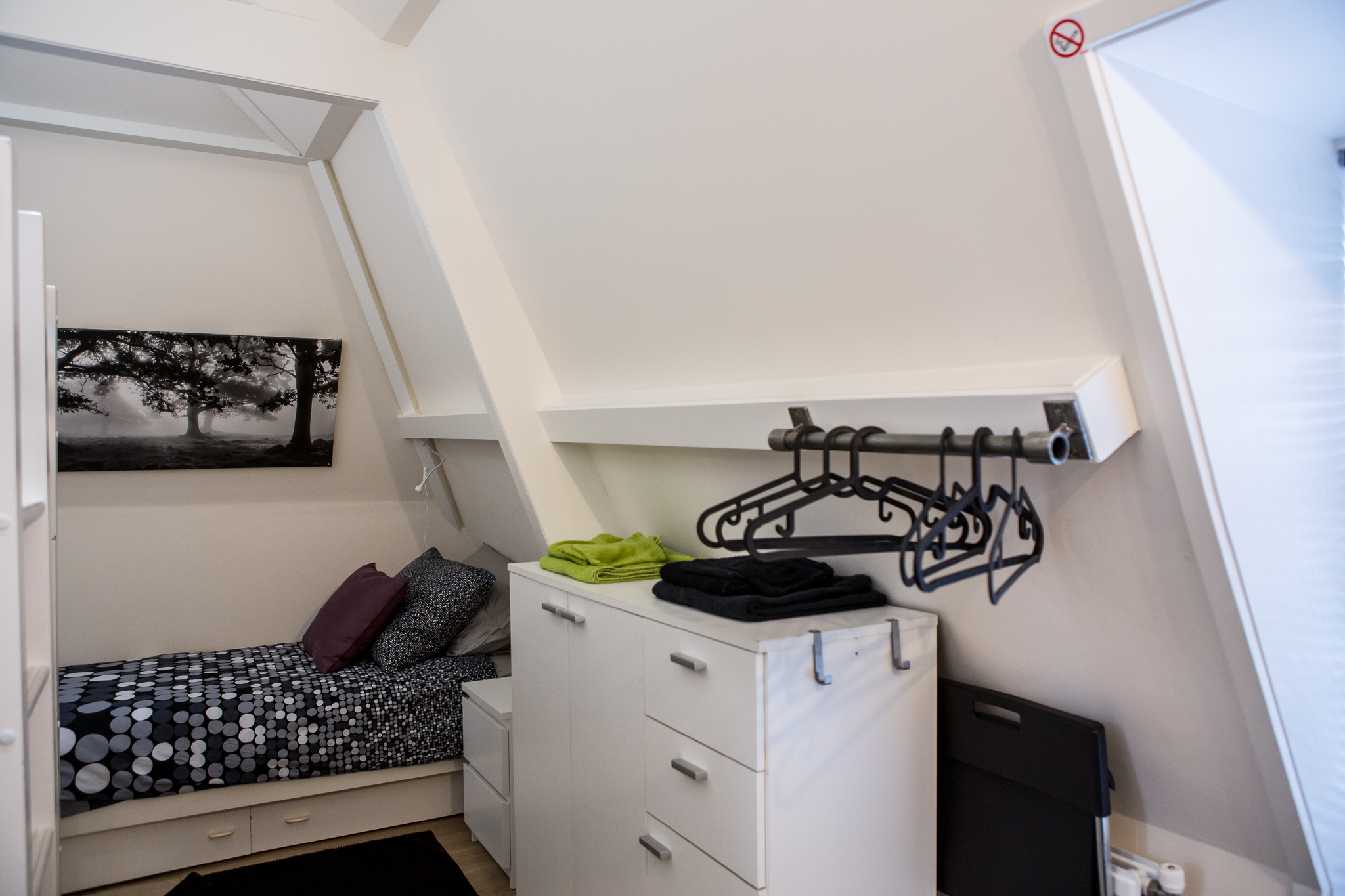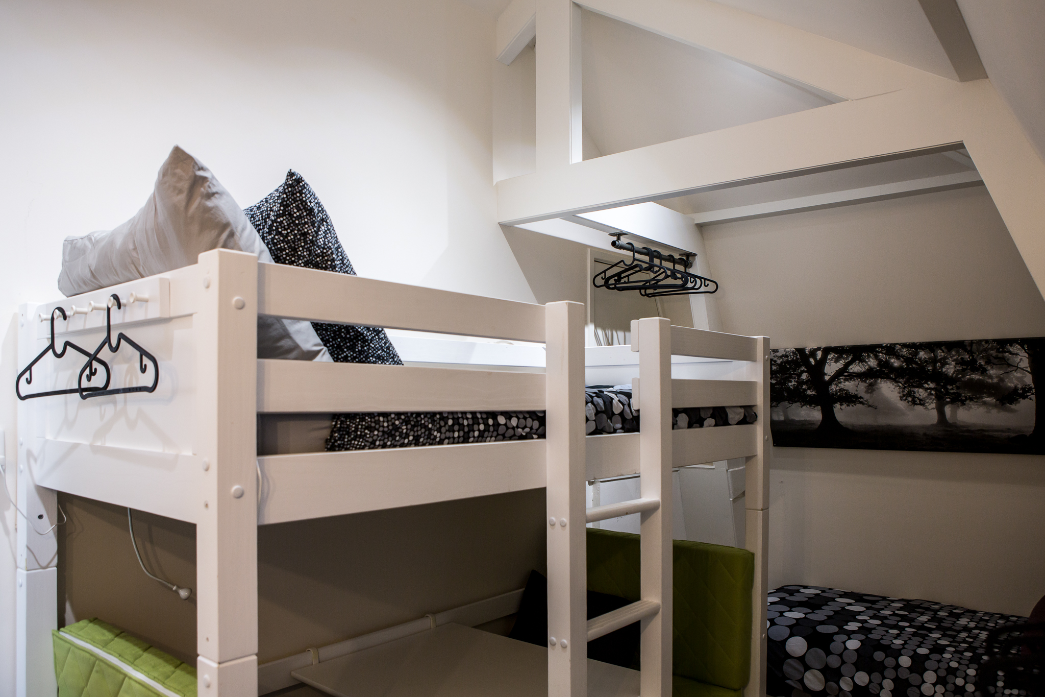 - Level 3: Two bedrooms both include sink and mirror, total of 3 single beds + 2 bunk beds. Lots of drawers, cupboards, hooks and hangers for personal belongings.